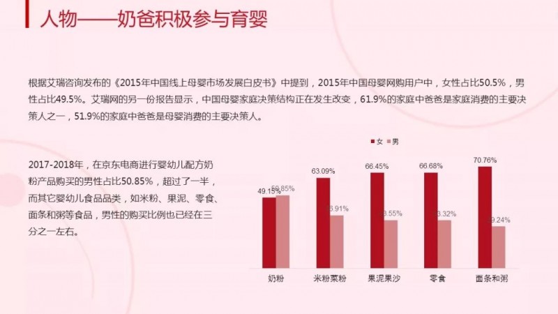 在消费群体方面,宝爸宝妈们的育儿理念也持续更新变化。如今,越来越多的妈妈开始追求个人成长和宝宝成长之间的平衡,而越多的宝爸也承担起了照顾宝宝的责任,传统“男主外、女主内”模式正在遭受挑战,这一趋势也将持续影响宝爸宝妈群体的消费诉求。