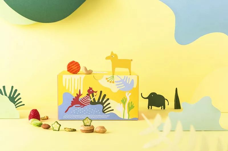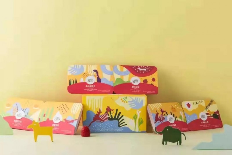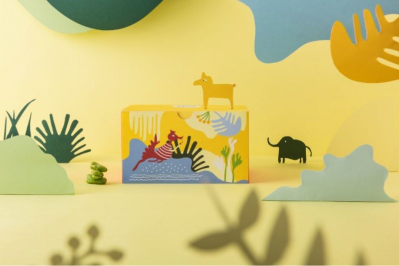 包装上的上印着卡通恐龙、大象、狐狸、狗狗等一众自然世界里的动物,还有风格超Q的丛林、海洋、草地......
