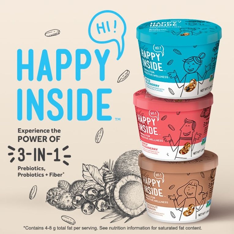 目前,新的HI!Happy Inside谷物系列有三种口味:草莓,蓝莓和椰子,每种口味的产品都混合了水果,酸奶碎片和100%全谷物,以及丰富的益生元和益生菌。有可重复密封的袋装和单独杯装的形式,建议零售价分别是12.99美元和13.99美元,可通过Costco和Boxed网站,以及亚马逊网站在线购买。