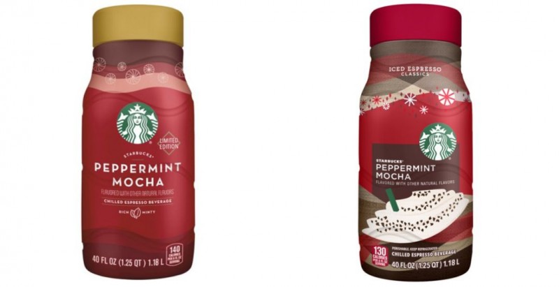 星巴克薄荷摩卡经典冰咖啡和薄荷摩卡即饮冰拿铁结合了星巴克意式浓缩咖啡和牛奶,薄荷,巧克力,每瓶40盎司,味道浓郁,圣诞气息浓厚。