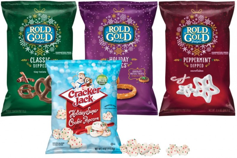 Rold Gold和Cracker Jack品牌此次也推出多款假日的季节性零食,以一系列圣诞假日元素为主题,包括:Rold Gold Dipped Pretzels带有经典的巧克力小饼干和薄荷味雪花形状饼干;Rold Gold Holiday Rings是一种椒盐脆饼干圈,专为节日设计;Rold Gold Festive Shapes独供沃尔玛,是一款形状类似雪花、树、拐杖糖和铃铛的椒盐脆饼干;还有带有绿色和红色巧克力彩针的Cracker Jack假日糖果曲奇爆米花。