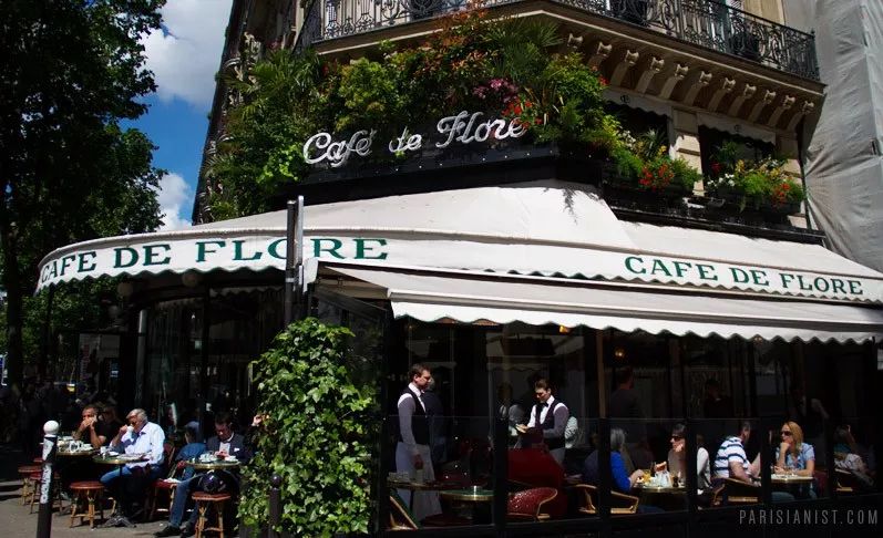 萨特初对存在主义着迷时,常和波伏娃去位于巴黎市中心的花神咖啡馆(Cafe de Flore)。如今的花神咖啡馆的外立面有着宽大的落地窗,位于街角,共有两层。其室内还保持着原有风格,红色宽大的卡座是其经典形象。