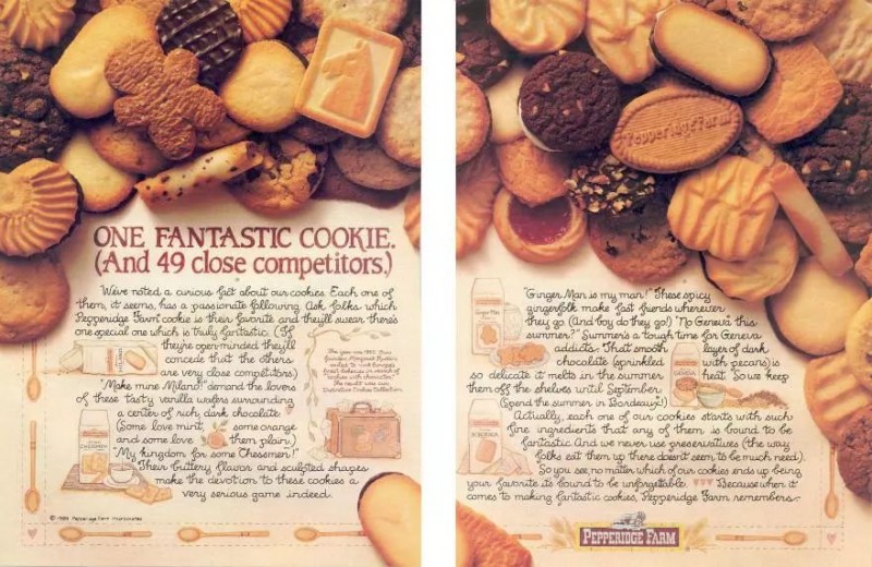 Pepperidge Farm获得了销售高质量高档产品的声誉,因此已经成为富豪的Rudkins一家开始在国际上搜寻新的产品。整个20世纪50年代,他们不断前往欧洲旅行,将美国没有的产品带回来,比如比利时的Milano饼干。到1961年,Pepperidge Farm已经拥有58种产品,销售额达3200万美元。Rudkin决定将公司卖给Campbell Soup,并成为董事会中的第一位女性,她也继续在世界各地寻找食物。1962年,她在瑞士发现了一个叫Kambly公司生产的饼干。它的形状像鱼,因为饼干制作人的妻子是双鱼座。Rudkin在1966年退休前不久将食谱带回了Pepperidge Farm。于是,Goldfish跨越海洋来到了美国。