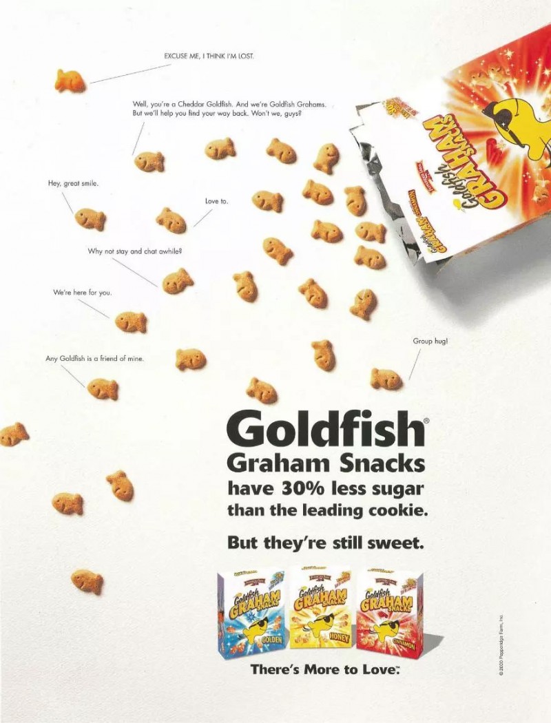 “来自20世纪70-80年代的许多传统品牌早已消失在岁月长河之中,但Goldfish却实现了两位数的增长,” Milling & Baking News编辑兼总裁Josh Sosland说。“它已经从一个利基产品,成为美国第二大最受欢迎的饼干品牌。年复一年,Goldfish都是最引人注目的。”