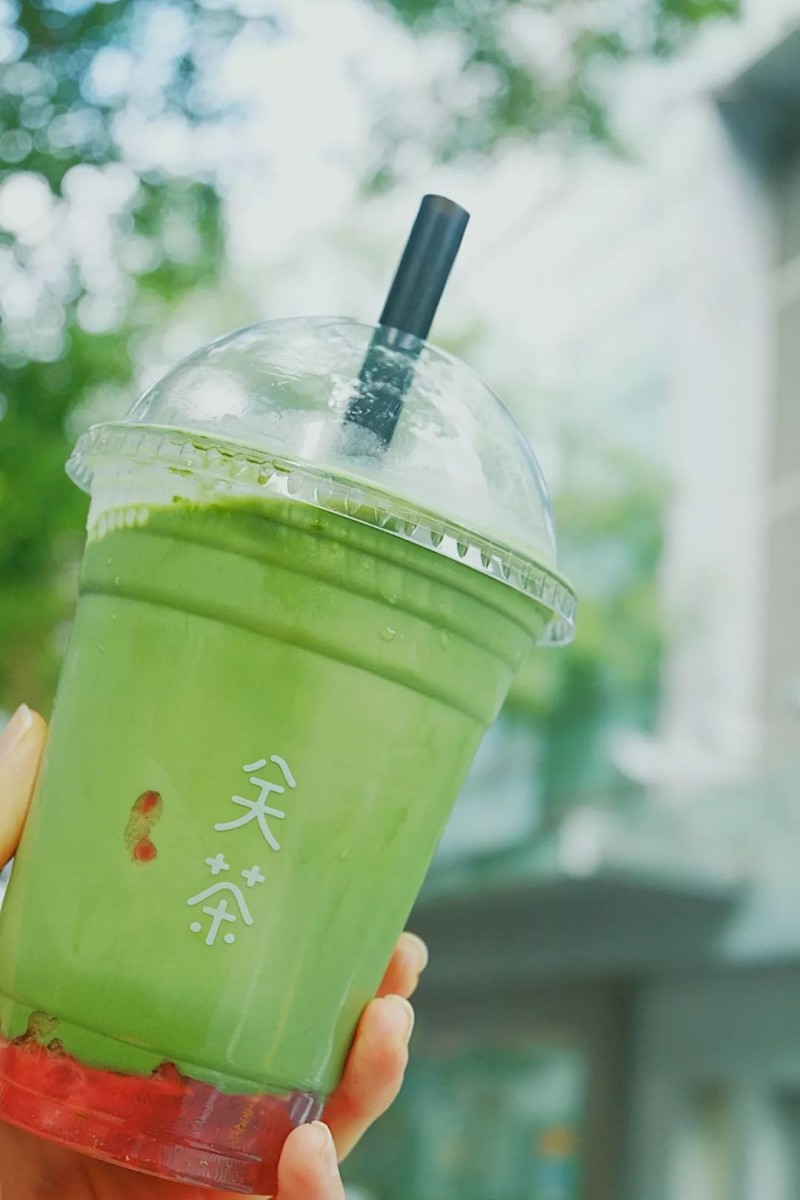 森系抹茶配萝莉草莓的双重“少女”味,冰凉温度的抹茶牛奶还是保持着一贯的香醇。