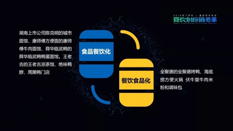 包括绝味鸭脖、周黑鸭门店等等,这些都属于食品餐饮化的典型案例。