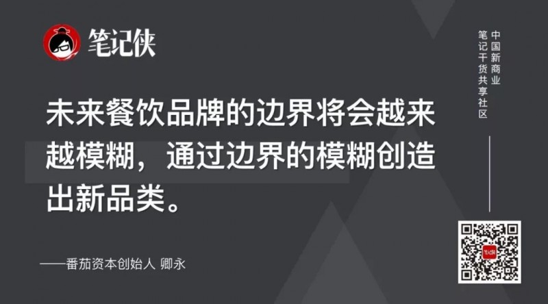 在未来,基本上都会是按照以上六个角度进行投资。未来餐饮品牌的边界将会越来越模糊,通过边界的模糊创造出新品类。