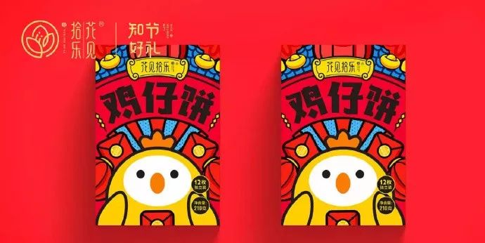 这款包装的特色用小鸡、红包、元宝等元素