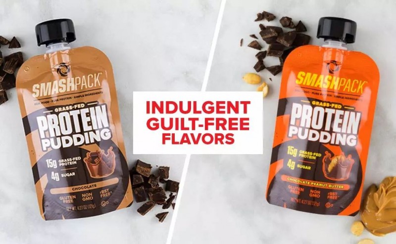 SmashPack 公司郑重推出的一款可挤压可重复包装的袋装高蛋白布丁, 货架期稳定,保存方便。有巧克力和巧克力花生酱两种口味,蛋白来源为草饲的牛奶蛋白混合物,包括浓缩乳清蛋白, 乳清分离蛋白和牛奶分离蛋白。以巧克力味为例,每袋含有130卡路里, 4 克脂肪, 4 克的糖 (添加 3克) 和15克蛋白质,无麸质且非转基因。零售价每袋2.99美元。