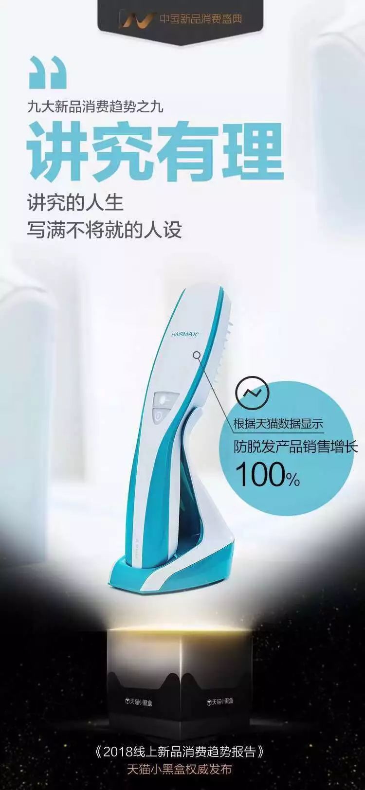 2018,堪称是“全民秃头”的一年。在快节奏高压力的城市生活下,大众对健康的关注和焦虑甚至催生出了一股“养生潮流”。防脱、熬夜这类新发掘的细分需求,也迎来了新品消费的井喷。天猫数据显示,防脱发产品销量增长100%、牙齿美白商品销售增长128%