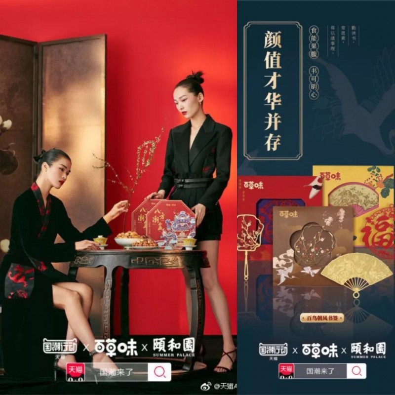 下面以百草味+颐和园为例,看看国潮怎么联手文创玩出新花样。