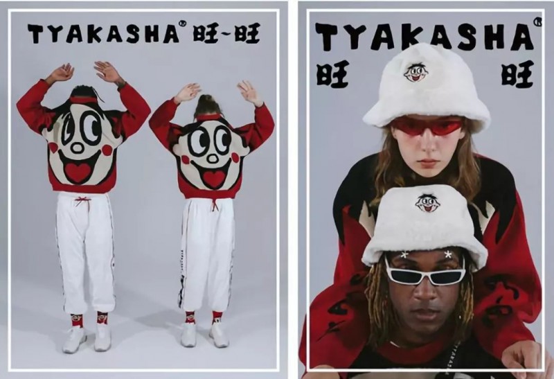 既然是潮,那么时尚就是产品的重要突出特点。或是给食品穿上时尚的外衣,或者反向将食品品牌穿上身。旺旺与潮牌服饰塔卡沙联名就属后者。