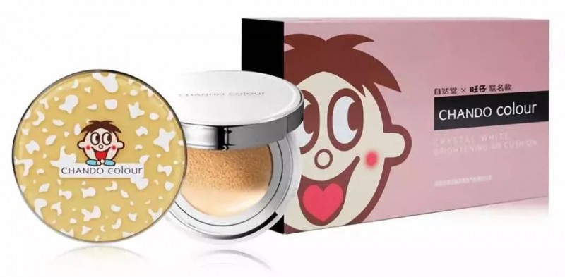 旺旺与自然堂的合作,将雪饼与美白的气垫粉底结合,这次旺仔不光出现在盒子上,还有白花花的雪饼。
