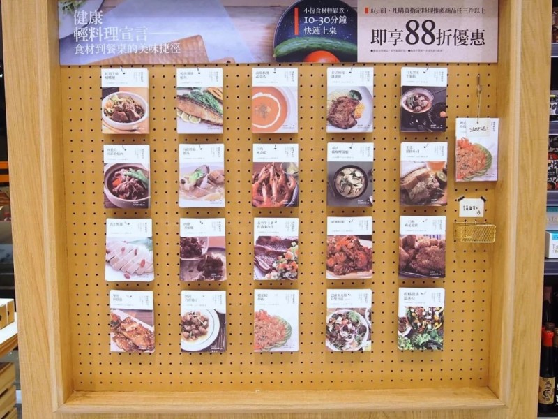 市集还推出「食谱计划」,每个季度推出20道料理食谱,让读者轻松学习10到15分钟、30分钟及专业的料理方式。读者还可自行挑选喜欢的食谱,用棉线串起自制成食谱书,免费带回家。