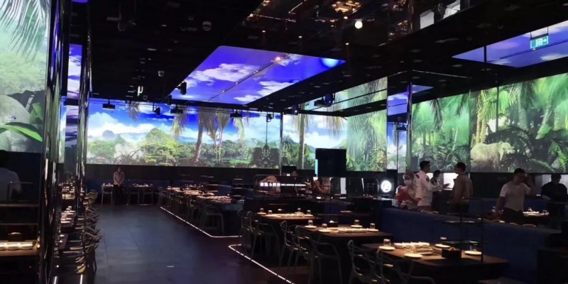 在用餐环境方面,海底捞智慧餐厅斥资千万打造全景布置360度立体投影。目前共有六大主题:星空、桃园仙境、雪山、油画、治愈系,让接地气的吃火锅变得诗意。值得一提的是,投影内容还可以订制,打造专属用餐场景。