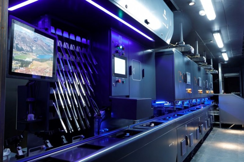 (1)智能菜品仓库:食材加工统一前置到中央厨房,集中加工配送。所有菜品都从自动控温30万级超洁净智能菜品仓库中,经过全程0~4℃冷链保鲜物流直达门店,进入自动出菜机。