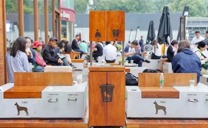 宠物友好门店均设有专门的宠物区域,为顾客的宠物提供舒适的休息环境。虽然宠物不能进店,但看似很简单的宠物区域,却精心安排了很多暖心小细节设施。