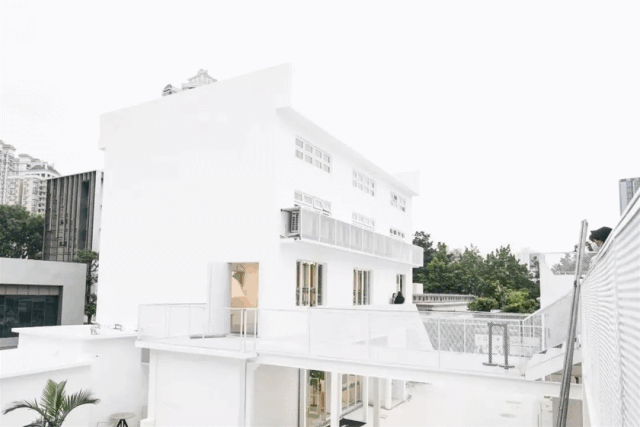 第一幢纯白房子有3层,1楼为贩卖饮料和甜点的 Shuter café。