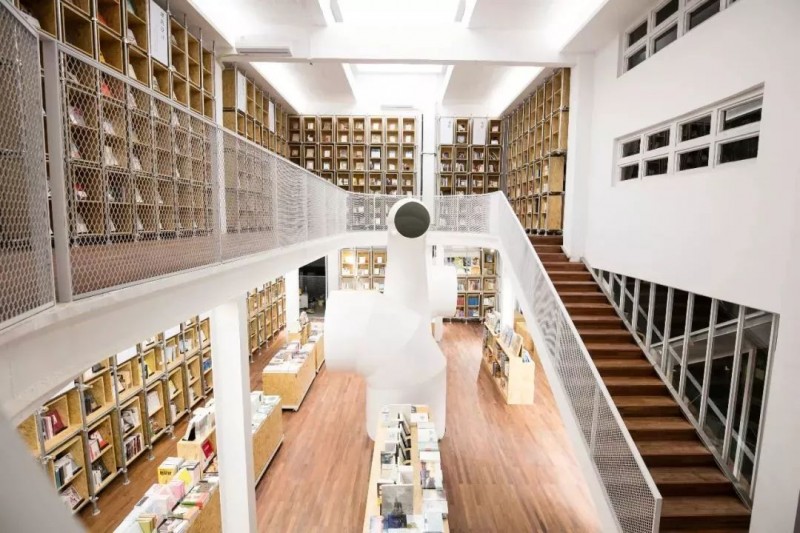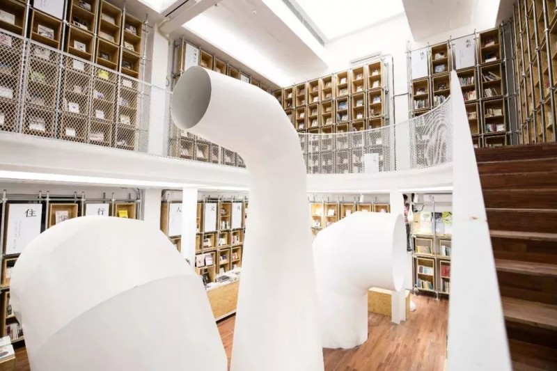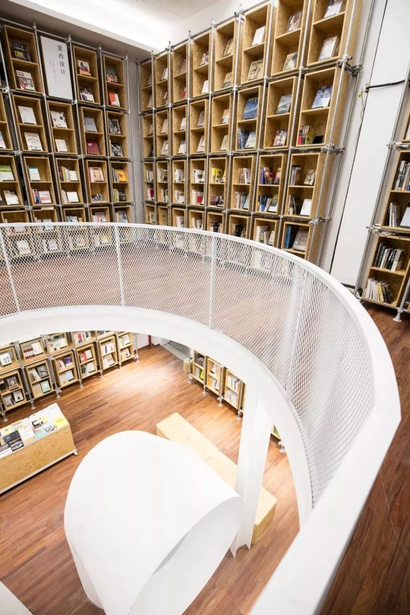在树德设计书店中,设有贯通上下的3条管窥装置.垂直纵深、微观见宏观的管窥装置,可以从一楼看到二楼,从二楼看到一楼,让空间与空间相互联通。