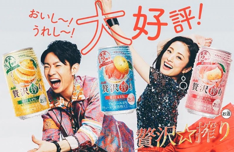 贅沢搾り是 Asahi 集团于去年春天发售的全新系列,找来了日本大人气 Arashi 的相叶雅纪代言,最新版 CM 也由上户彩与爱拔共同出演。