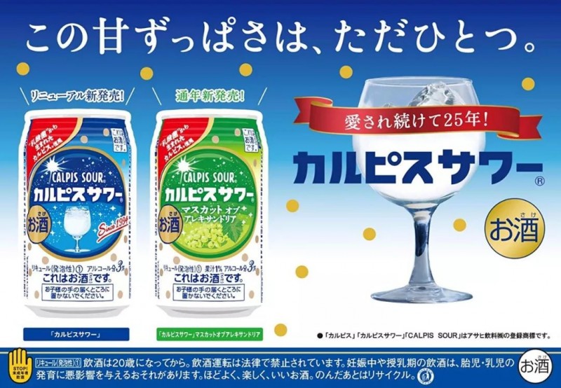没有什么配上可尔必思是不好喝的,Asahi 深谙此理,将可尔必思作为基底调配的 Calpis Sour 系列从 1994 年设立以来从来是畅销品。