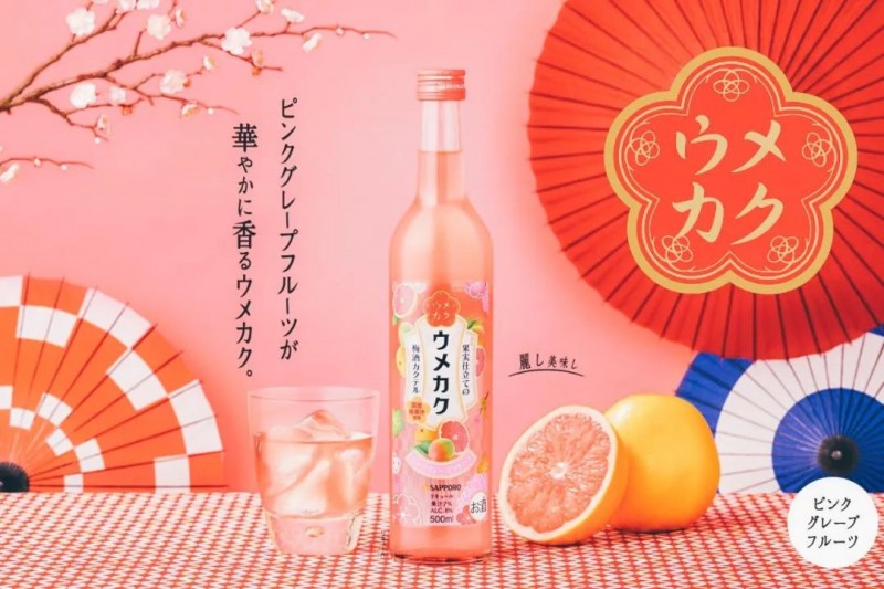 “梅酒カクテル”是以日本国产梅子制成的梅酒作为基酒,再加上果汁、苏打水调成的发泡酒,粉红的酒色及复古的包装设计让人印象深刻。其中的“ウメカク桃子”可以同时品尝梅子与桃子的果实滋味,口感甜中带酸,余韵中还带有浓浓的梅子香。