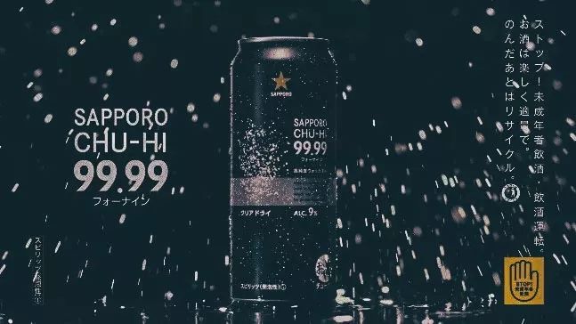 最后再来推荐一款Sapporo集团去年夏天推出的话题之作—Chu-hi 99.99(Four Nine)。这款酒具有透明度,使用纯度达到 99.99% 的伏特加,是一款纯粹的 Chu-hi。大人感的长谷川博己是它的代言人。