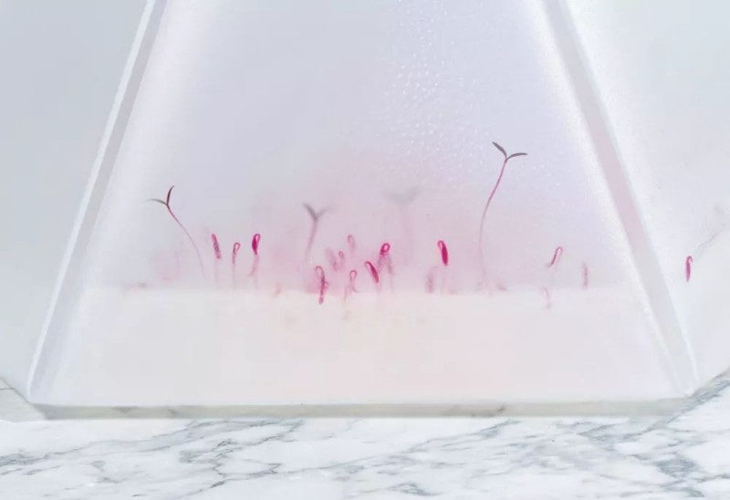 Microgarden Kit 包含了一个可被回收再利用的 PP 塑料,以透明的海藻凝胶充当泥土。