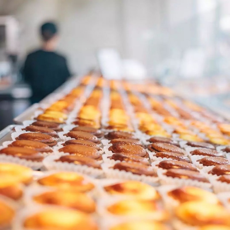 而且每家分店顾客可以在店里的玻璃橱窗,直接看到师傅制作蛋挞。