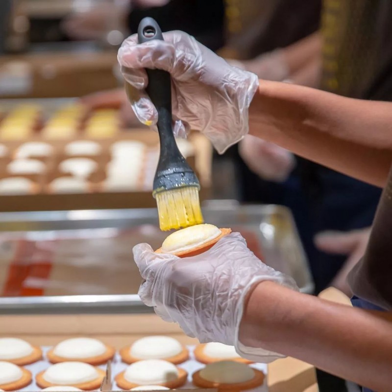 这也是长沼真太郎实验出来的制法,他发现烤两次的蛋挞,挞皮会比普通的蛋挞更加香脆。