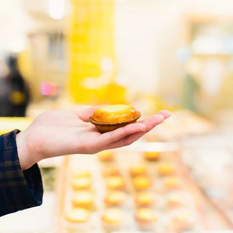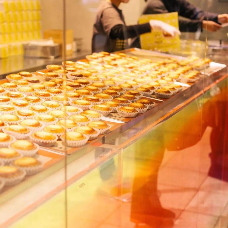 平铺开来的芝士蛋挞,吸引着每个路过的行人。
