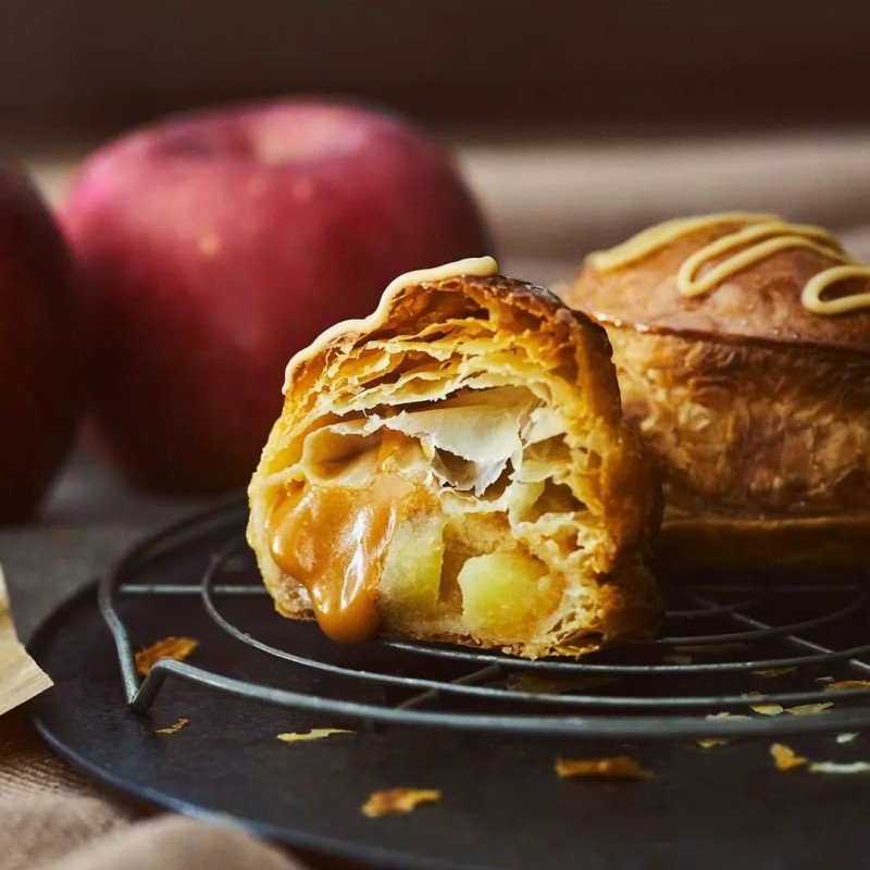 它是由北海道的洋菓子店的 30 年秘方改良而成,100 多层的脆皮包裹着苹果粒和忌廉。