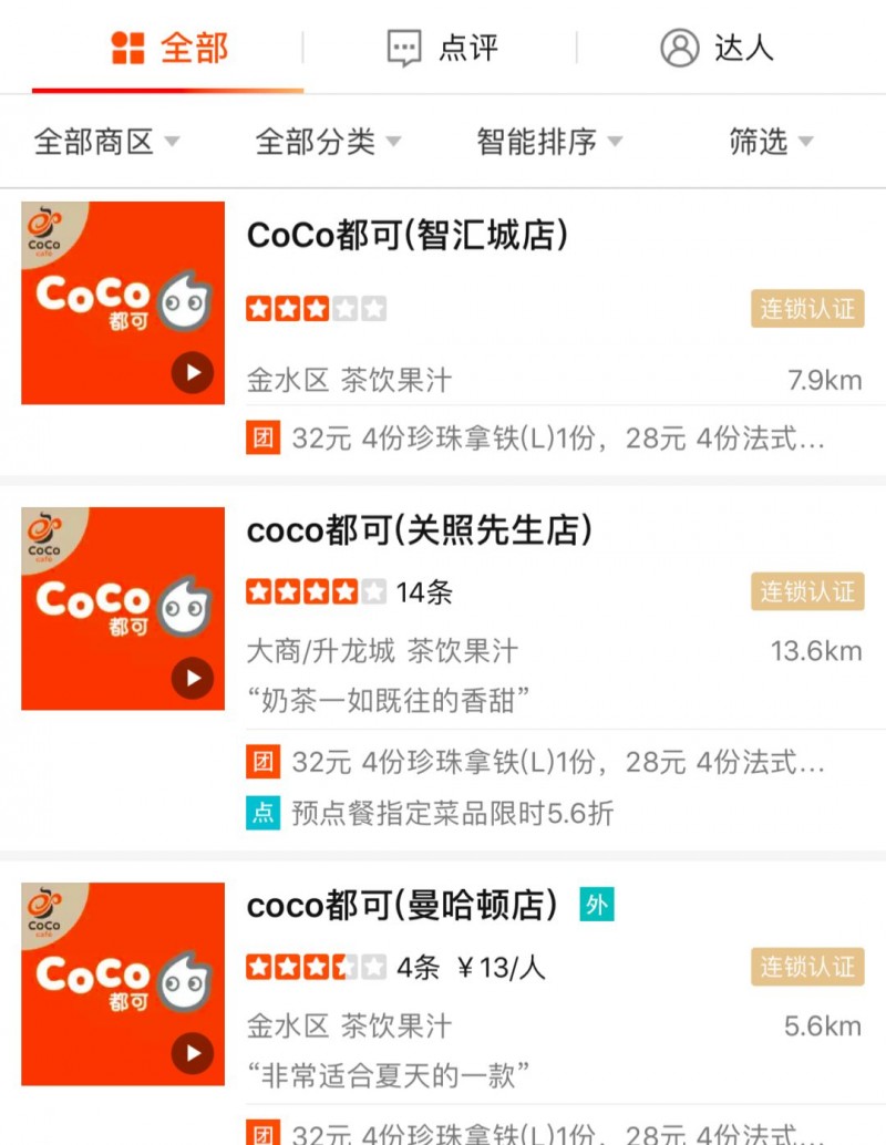 ▲ 通过美团可以看到,CoCo都可很多店铺都已上线咖啡产品