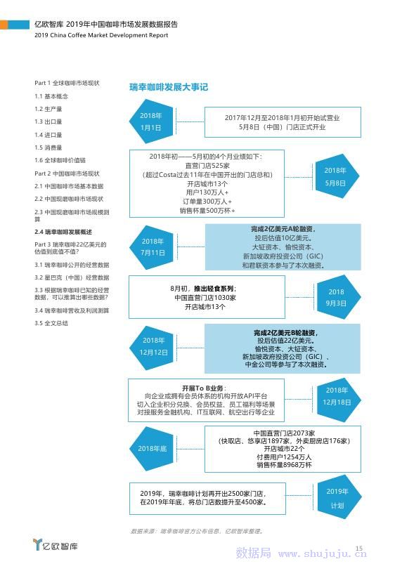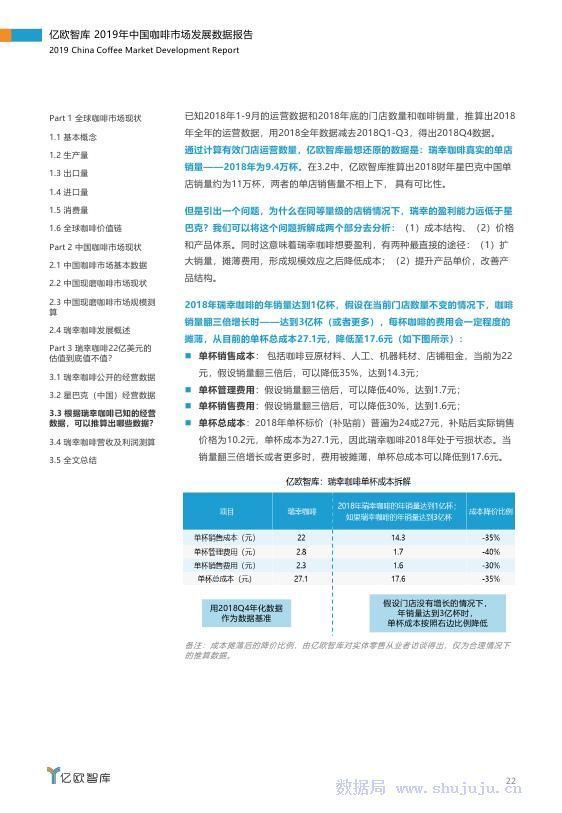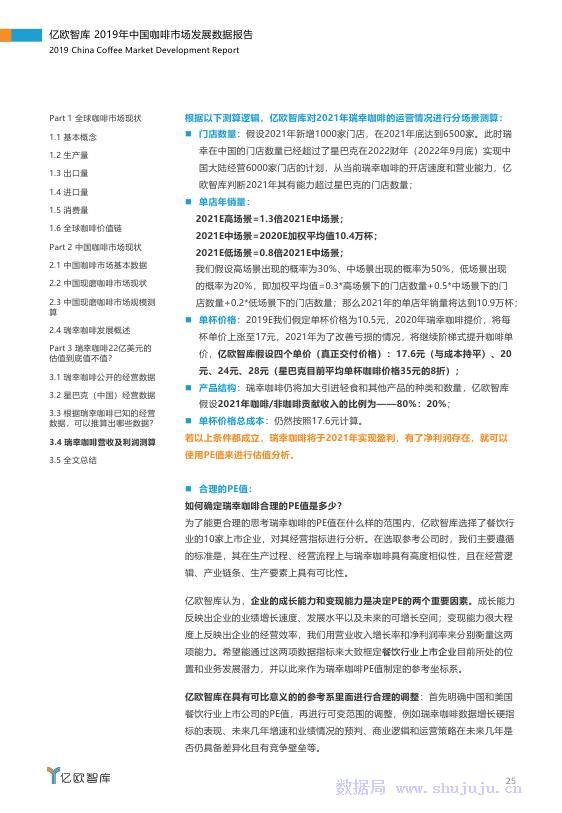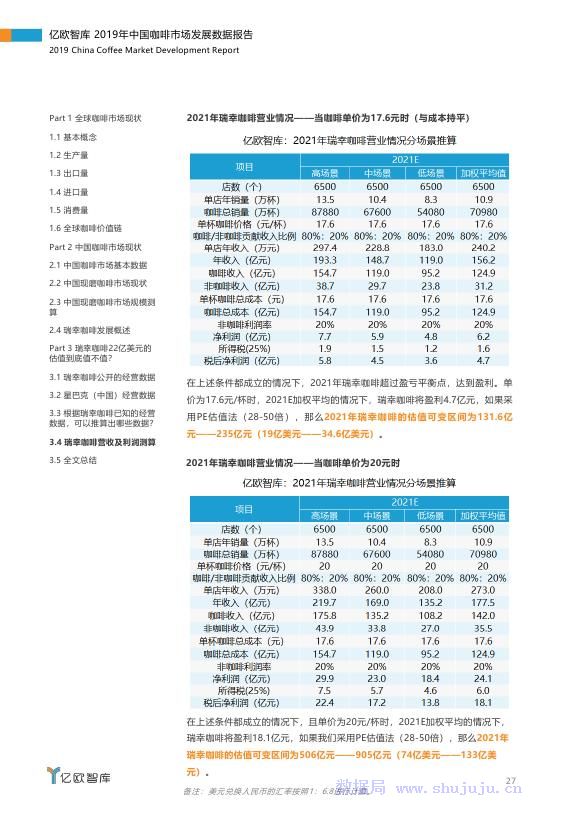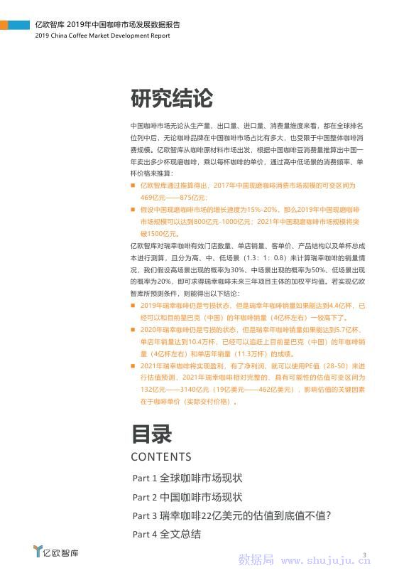 本报告聚焦咖啡消费市场,以瑞幸咖啡为研究主体,以星巴克(中国)和多个餐饮行业上市公司作为参照系,回答以下三个问题: 1. 全球咖啡市场现状,以及中国咖啡市场目前处于什么样的水平? 2. 中国现磨咖啡的市场规模是多少? 3. 瑞幸咖啡22亿美元的估值到底值不值?以及瑞幸咖啡完整的、相对具有可能性的估值可变区间。