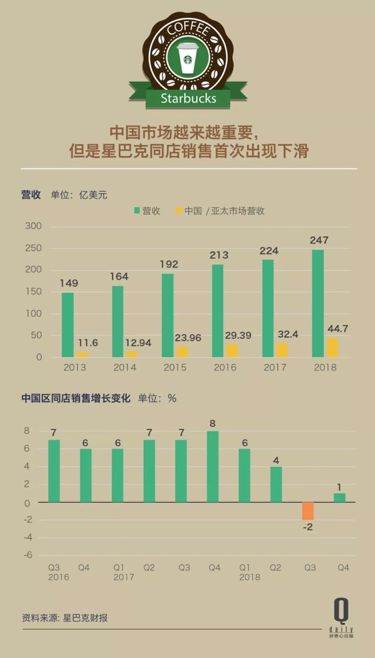 而入华20年高歌猛进的星巴克,在过去1年也遭遇了猝不及防的增长放缓。2019年1月星巴克发布的最新财报显示,中国同店销售上升1%,虽然和2018 Q3 同店销售下降2%相比,已连续两个季度止跌,但和2018 Q1 或以前6-7%的增速比,星巴克在中国发展已大为放缓。