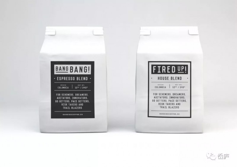 「黑与白」是极简设计中最常运用的颜色。黑色包容,白色纯净,一些初创的咖啡品牌巧妙借用黑与白的经典搭配,如万花筒般激发出无限火花。