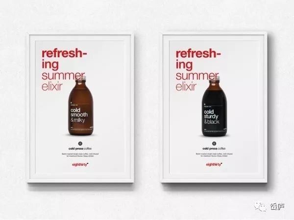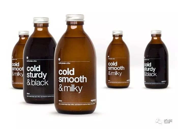 而新西兰Eighthirty Coffee Rosters 这组琥珀色玻璃瓶既突显工匠精神,又能防范外界日光照晒。Eighthirty一贯的排印特色也没有被破坏,相当经典的设计。