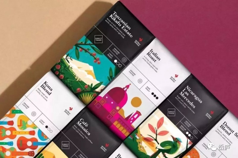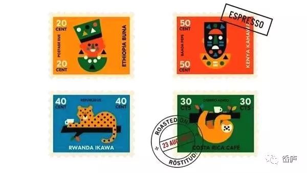 不同产地的咖啡豆,采用不同的图案与颜色,故事性极强,令人印象深刻。而邮戳上的日期则是烘焙日期。收到这样的咖啡豆让人有种收到国际包裹的感觉,有设计感又不失趣味的邮票也成为粉丝们收藏的对象。