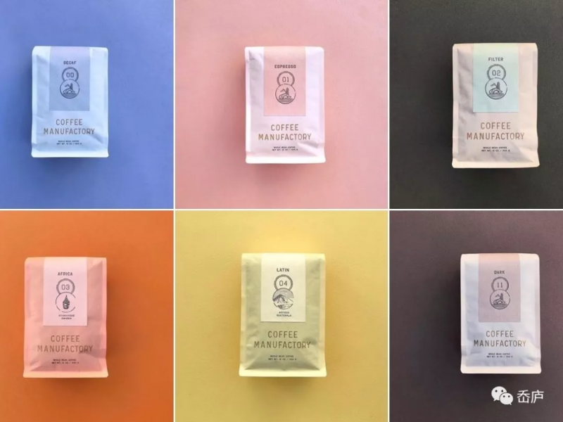毋庸置疑,低饱和度的颜色开始越来越受欢迎,相关颜色的运用也是咖啡包装设计中需要关注的方向。不少年轻的咖啡品牌已在产品系列中运用此类颜色。
