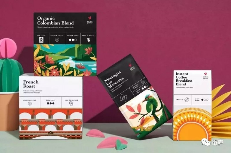 这款视觉醒目惊艳的咖啡包装来自Archer Farms。用卡通插图和生动的颜色,与其它咖啡包装区别开来。