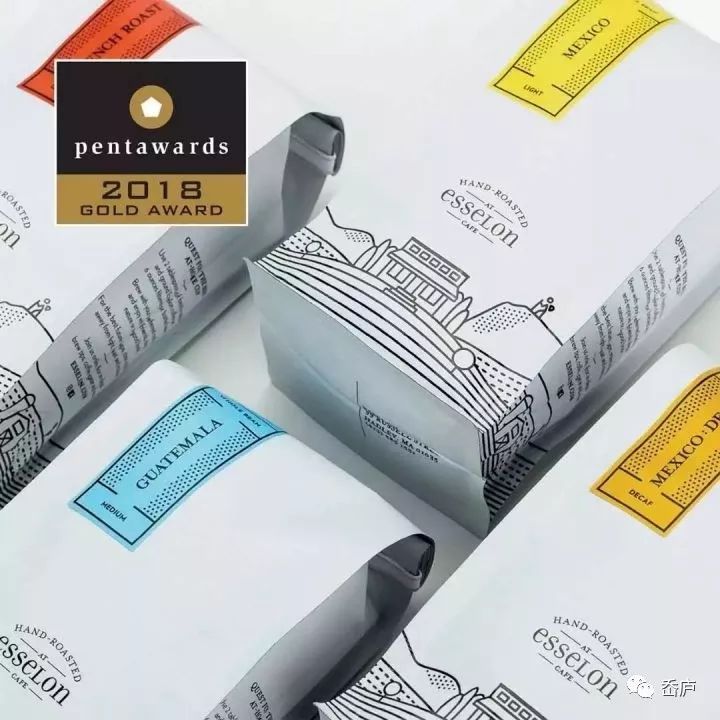Esselon Café 是美国一间颇受欢迎的社区型咖啡馆。它在一次品牌升级的策划中,为熟豆包装量身定做了全新方案,收获赞誉一片,并荣获2018年Pentaward包装大奖。