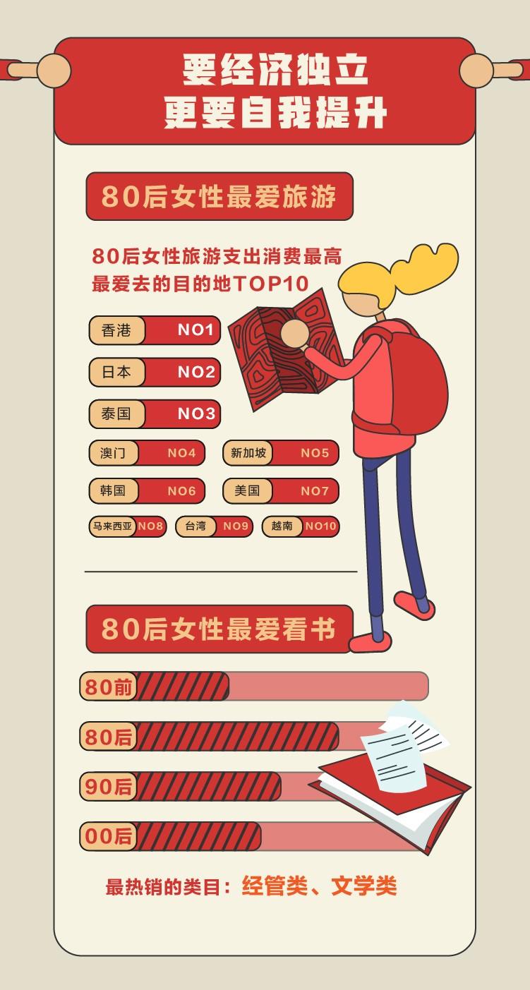 要么去读书,要么去旅行——对很多女生来说,经济独立固然重要,但生活更需要质感,既要专注眼前的事业,更要有诗和远方。天猫数据显示,在关注自我提升的商品中,书籍和旅游产品妥妥占据了热销榜前两名。