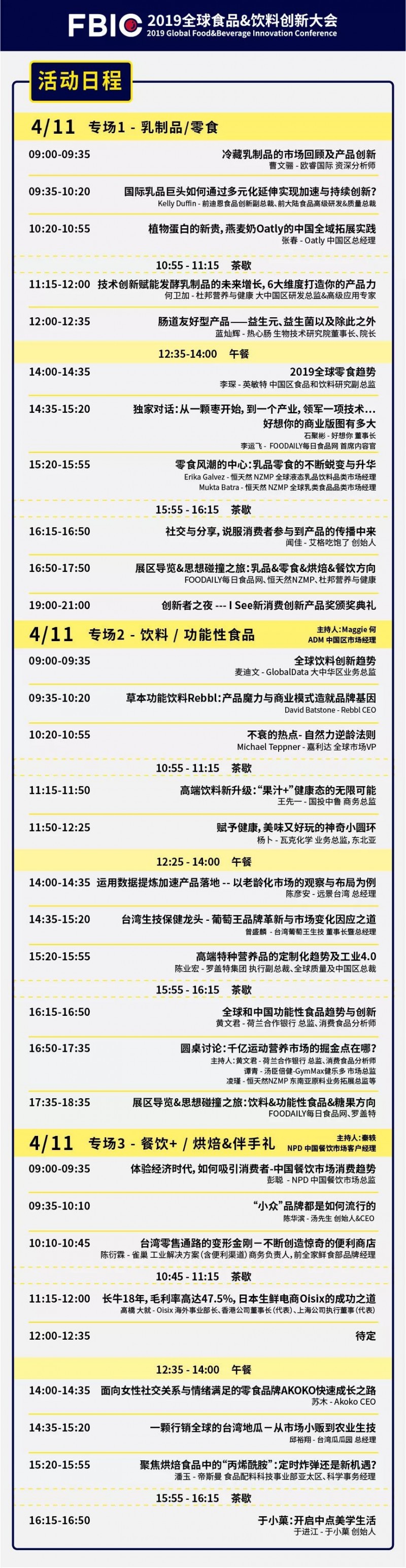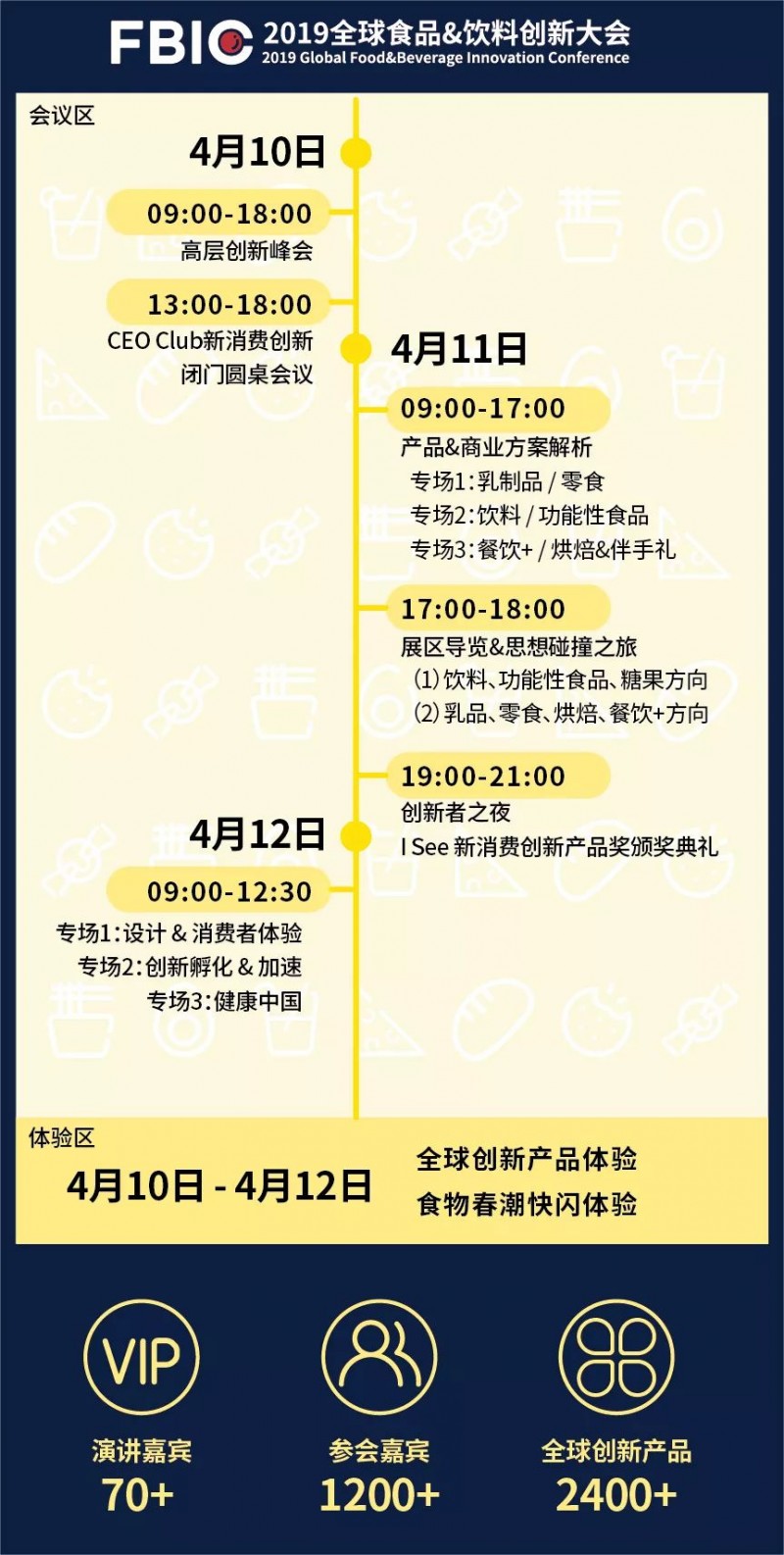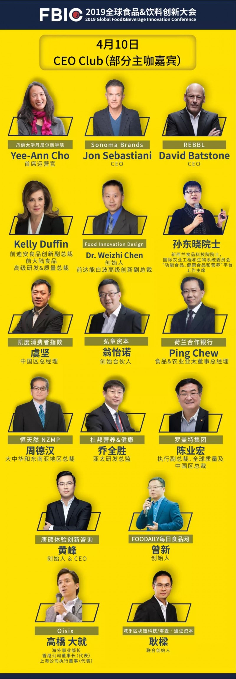 我们始终聚焦“产品&创新”,着眼C端到B端,致力于让每一位参会嘉宾身临其境地去体验并发掘一个个商业机会,并寻找到相应的解决方案。因此2019FBIC将以“全球创新产品体验+创新峰会+CEOClub+ISee新消费创新产品奖+食物春潮体验快闪”的形式,深度解读消费者、市场、技术、产品、品牌、体验等创新案例,以达到加速食品行业产品创新,构建产品决策人的创新社交的目的。这一次,我们将打通产品创新的全链条,从CEO到消费者。