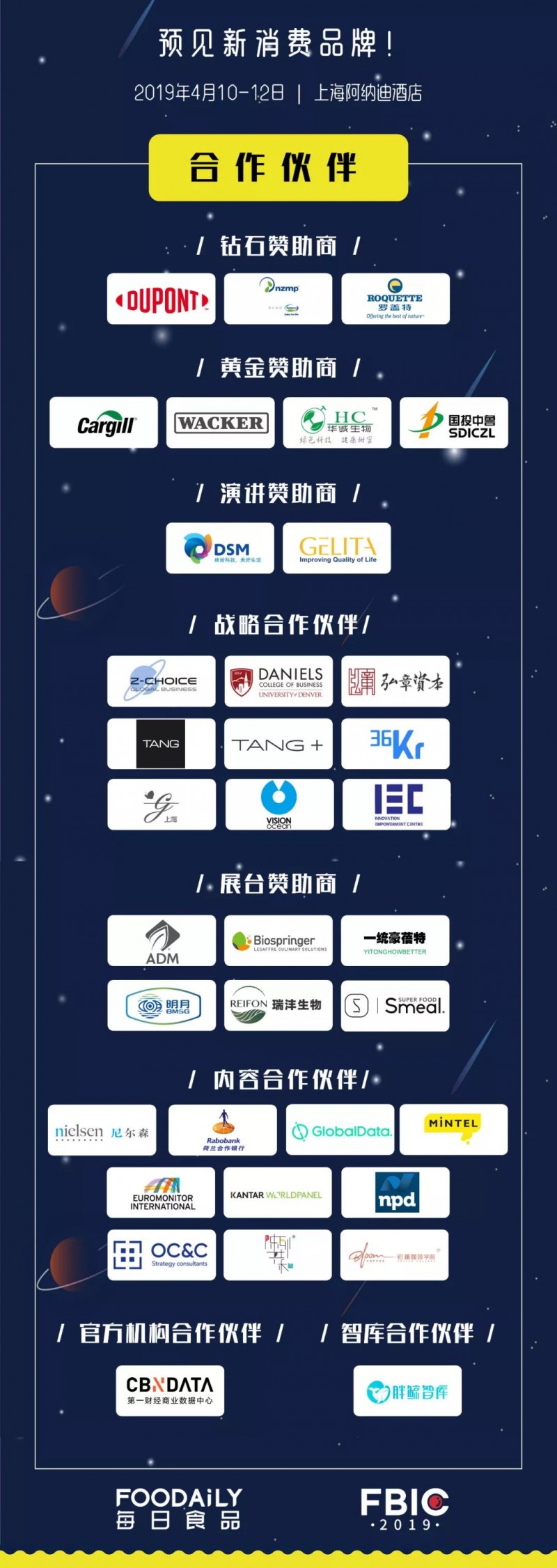 秉承着开放式创新与整体设计创新的理念,Foodaily每日食品网联手食品行业&产业巨头共同打造的“2019全球食品&饮料创新大会(FBIC)”将于4月10-12日在上海阿纳迪酒店(长宁区临虹路7号)举办。
