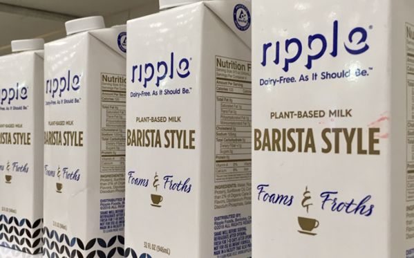 豌豆蛋白品牌Ripple展示了自己咖啡风格的植物来源乳制品,咖啡+豆奶,一听就是不错的组合,除了豌豆蛋白,该产品还使用了葵花油,具有醇厚的泡沫和柔软光滑的口感。