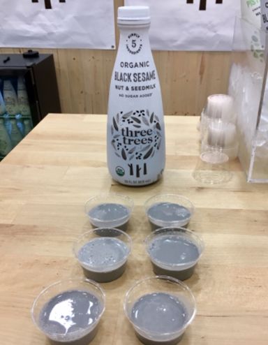有机植物来源乳制品品牌Three Tree在此次展会上向大家展示了自己的黑芝麻、坚果和芝麻混合奶,其中还含有过滤水,有机大杏仁,有机大枣,以及喜马拉雅粉红盐。不含人工色素,添加糖和稳定剂。