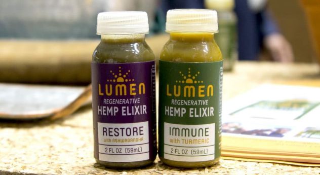 新品牌Lumen展示了两种2盎司的冷榨大麻汁口服酏剂,功能分别为恢复(添加了南非醉茄)和免疫(添加了姜黄)。