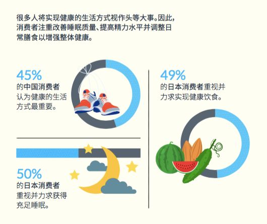 由于工作生活压力的增大,中国的消费者希望能改善睡眠质量、提高精力水平等,这让他们不断地寻求健康生活方式类的新产品。