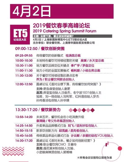 最重要的是,淘汰落后的经营模式和管理体制,带来最新的餐饮运营体系,为餐饮人的提供一个交流互动平台。HOTELEX 上海现场论坛为大家搭建一个权威、高效的资源对接平台!总有一款pick你需要的“知识点”,进入论坛现场,离下一个餐饮风口,一步之遥!
