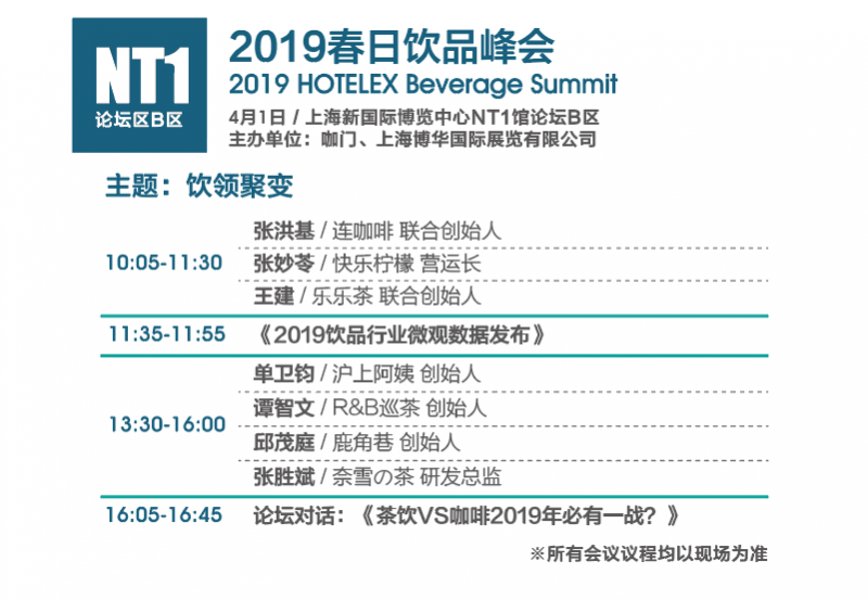 伴随着新饮品市场在餐饮业态中逐渐走俏,以嘉宾主题分享、行业论坛对话、饮品数据发布为主的“2019春日饮品峰会”上线啦!连咖啡、快乐柠檬、乐乐茶、沪上阿姨、巡茶、奈雪の茶等相关创始人及其管理者到现场做经营分享,咖啡VS茶饮,总有一款能get到你的饮品运营新思路!